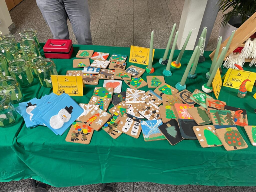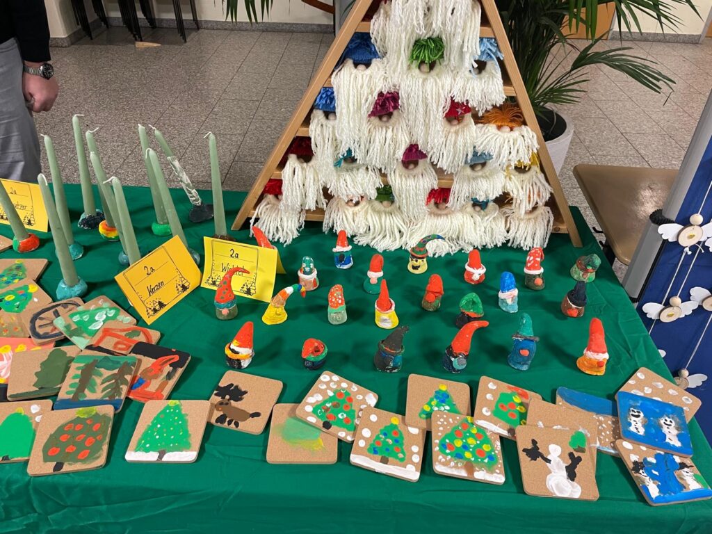 Im Anschluss ging das Beisammensein auf dem Schulgelände weiter. In der Schule wurden zahlreiche von den Kindern gebastelte Werke verkauft, darunter Wichtel, Weihnachtssterne, dekorative Tannenbäume und Windlichter. Der Erlös kommt einem guten Zweck zugute. Besonders schön ist, dass die Kinder in diesem Jahr selbst darüber abstimmen dürfen, an welche Organisation oder welchen Verein das Geld gespendet wird.